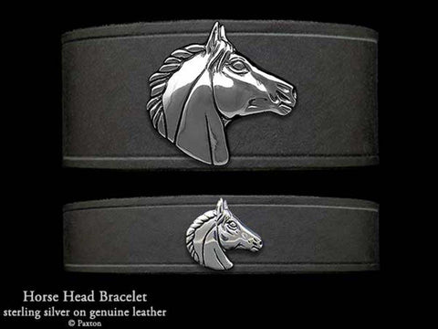 Horse Head Bracelet Sterling Silver on Genuine Leather